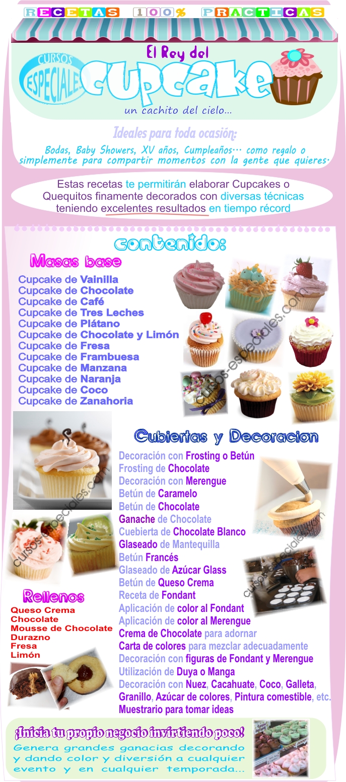 Aprende con este curso de Cupcakes, las mejores recetas de cupcakes detalladas paso a paso y con fotografías.