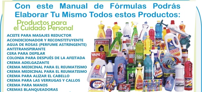 Formulas de Productos de Limpieza como: Cloro, Jabón Líquido, Desinfectante, Sarricida, Pinol, Suavitel, Quita Cochambre, etc.